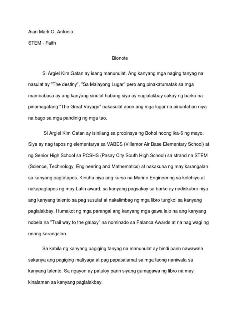 Halimbawa Ng Bionote Sa Sarili Pdf