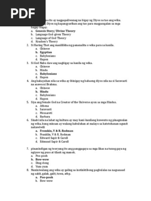 Unti-unting mawawala ito kapag hindi ginagamit. Egyptian Si Haring Thot ang manlilikha ng pananalitao wika para sa kanila. -natututunan sa lipunan na kinalakihan ng isang indibidwal.