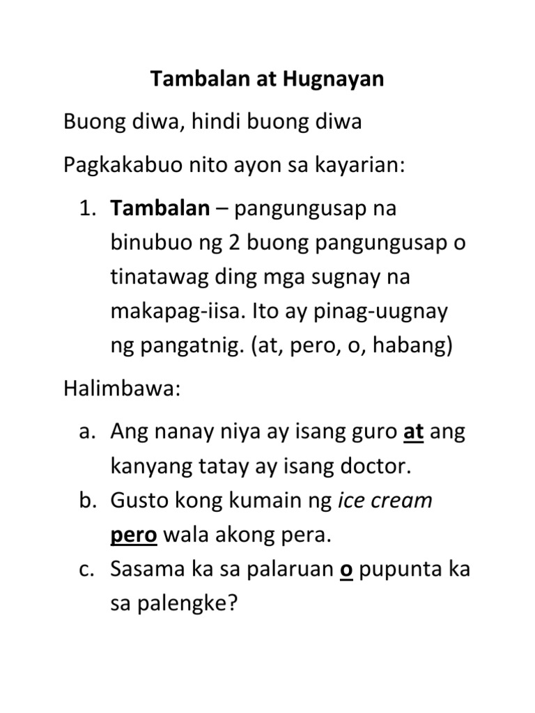 65583668 Tambalan At Hugnayan Pdf Tambalan At Hugnayan Buong Diwa Hindi Buong Diwa Pagkakabuo Nito Ayon Sa Kayarian 1 Tambalan U2013 Pangungusap Na Course Hero